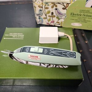 This vintage Sears Best Cordless Rechargeable Electric Scissors #2170 from the 1970s is a must-have for any sewing enthusiast. The scissors feature a stainless steel blade size of 1 inch and a standard straight cut type. They are suitable for both left-handed and right-handed individuals and are perfect for cutting out patterns or fabric.