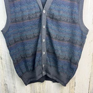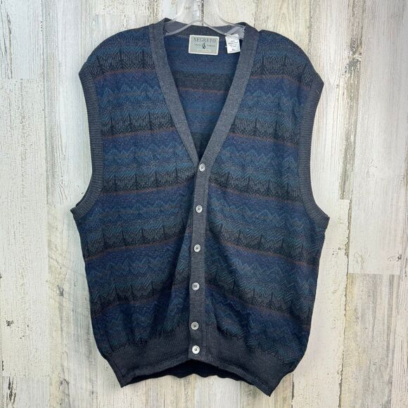 VINTAGE SEGRETO 100% MARINO WOOL PATTERN VEST SIZE LARGE MADE IN ITALY