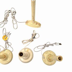 Versatile lamp bases with an antique-inspired dripping candle design. Ideal for holidays or as unique home décor accents. Wired for electric use. Different shaped bases include ovalish/rectangular, decorative round and floral round.