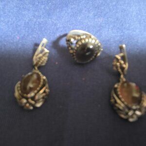 VINTAGE SET OF RUSSIAN RING AND EARRINGS IN LOW GRADE RUSSIAN SILVER METAL WITH