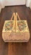 VINTAGE SEWING KIT BASKET Floral Embroidered Needlepoint Wicker ANTIQUE LARGE