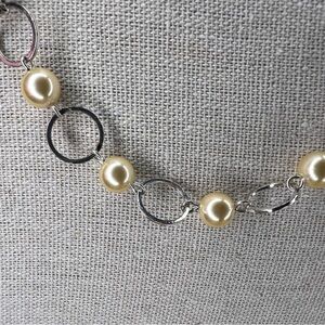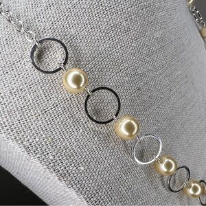 VINTAGE SHB SILVER FAUX PEARL NECKLACE CLASSIC RETRO PINUP PEACH PEARL
