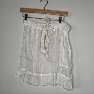 VINTAGE SHEER WHITE COTTON APRON~POCKET~PINK EYELET TRIM~MARGE OF HOLLYWOOD. This vintage sheer apron is in good pre-owned condition, with the exception of a bit of yellowing on the front as shown in photos. I didn’t try to get it out, I’ll leave that to the buyer. It ties in the back and has one front pocket that is fairly deep, measures 8” long and 6” wide, perfect for carrying a spatula! Overall measurements are 16” waist and 19” waist to hem.