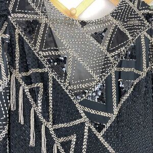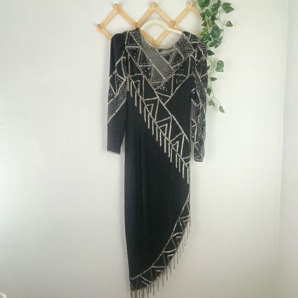 VINTAGE SHO MAX ORIGINALS Embellished Asymmetrical Silk Dress Size Medium GUC