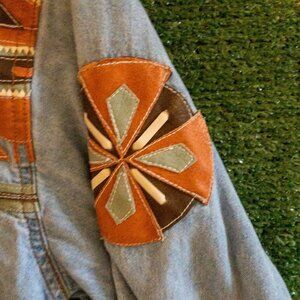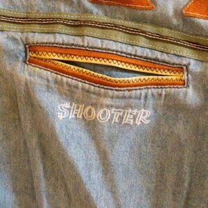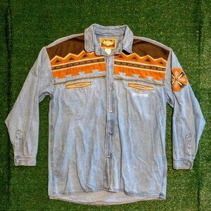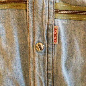 VINTAGE SHOOTER MENS SHIRT BLUE DENIM SOUTHWESTERN CHAMBRAY PEARL SNAP SZ L