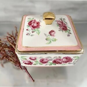 VINTAGE SICAS SESTO FIORENTINO Porcelain Serving Bowl Lidded Floral Square
