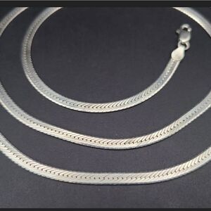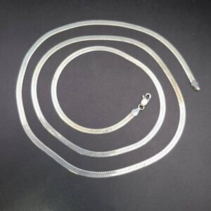 This stunning vintage estate necklace is a classic piece crafted in sterling silver, signed "Italy," showcasing the timeless elegance of Italian craftsmanship. Measuring 30 inches in length, it features a sleek and sophisticated herringbone design that lies flat against the skin, making it perfect for layering or wearing on its own as a statement piece. The smooth, polished surface enhances its reflective quality, giving it a luxurious shine. Finished with a sturdy and secure lobster claw clasp, this necklace is both stylish and functional—a perfect addition to any vintage jewelry collection.