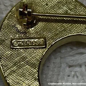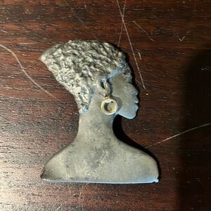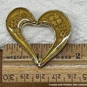 VINTAGE SIGNED KERRISA ENAMELED INLAY ABSTRACT COOL BROWNS HEART BROOCH PIN NICE