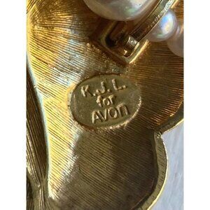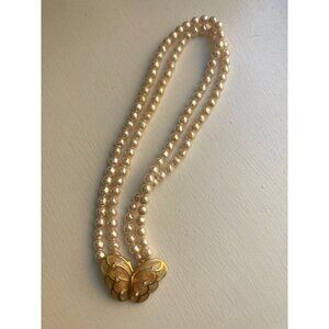 VINTAGE SIGNED K.J.L. FOR AVON FAUX PEARLS WITH ENAMEL BUTTERFLY 18" NECKLACE