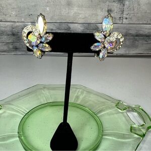 VINTAGE SIGNED WEISS CLEAR RHINESTONE CLIP ON EARRINGS