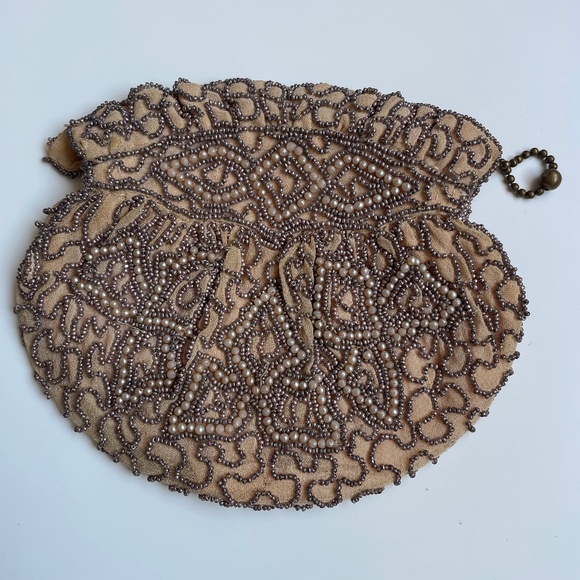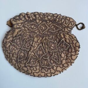 VINTAGE SILK BEADED WITH SEED PEARL…BRIDGERTON ERA LADIES BAG——MADE IN BELGIUM