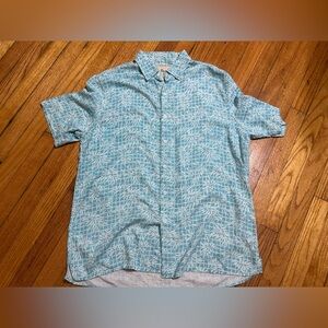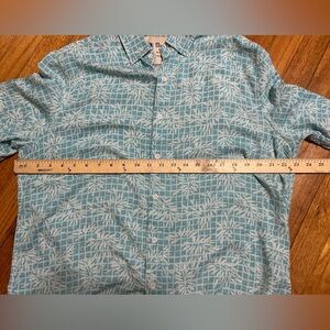 VINTAGE SILK CIRCA 1969 Shirt Mens Large Silk Blend Hawaiian Short Sleeve Teal