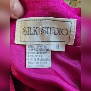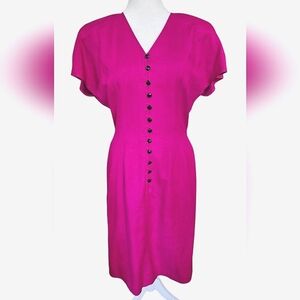 VINTAGE SILK STUDIO buttonFront Dolman Cap Sleeves Midi Dress In Pink. Size 8