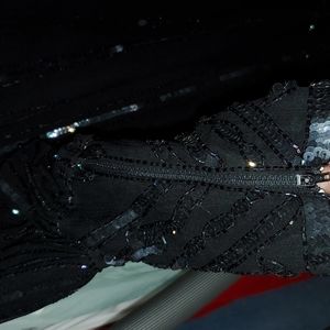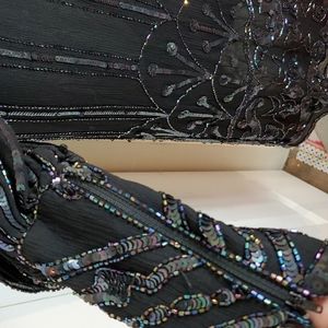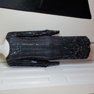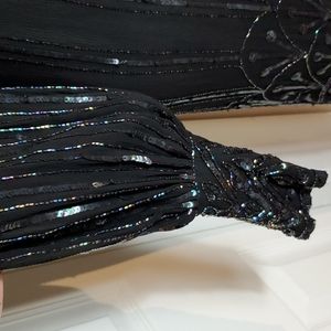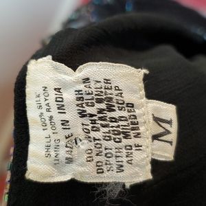 this dress is very well made and stunning with dramatic sleeves a little see through which gives it a sexy look no zipper or buttons just slip over your head easy to put on and take off very little sequins missing not noticeable at all sleeves has a small zipper MADE IN INDIA SILK FABRIC