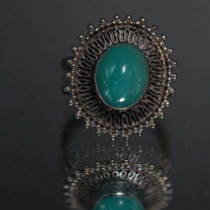 VINTAGE SILVER 950 CHRYSOPRASE SPLIT RING