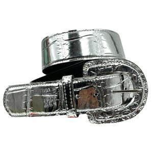 VINTAGE SILVER METALLIC CROCODILE PRINT BELT 1980s 1990s RETRO FUNKY GLAM SIZE M