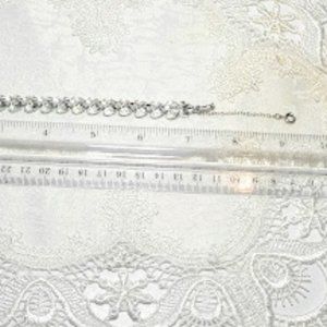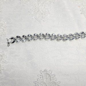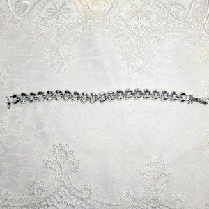 THIS IS A VERY NICE VINTAGE SILVER PLATED THREE TEARDROP SHAPED BRACELET WITH SAFETY CHAIN MEASURES APPROX 7.5"