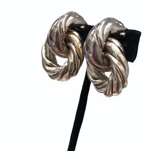 VINTAGE SILVER TONE PUFFY TWIST HUGGIE WITH CIRCLE DROP CLIP ON EARRINGS