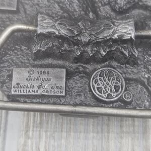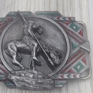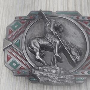 The SISKIYOU End Of Trail Lone Warrior Vintage Native American 1988 belt buckle is a unique and culturally significant piece of Western Americana collectible. Made in the United States, this belt buckle features a Native American design that reflects a sense of history and heritage. While it is not handmade, it still holds value as a symbol of the Western American culture, perfect for collectors or those interested in vintage pieces from 1988. With its detailed craftsmanship and Siskiyou brand, this belt buckle is a standout piece that captures the essence of the American West.