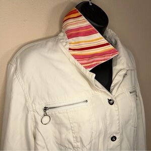 VINTAGE SIZE 16 SILK BLEND JACKET WHITE RANDOLPH DUKE COLORFUL TRIM LONG SLEEVE