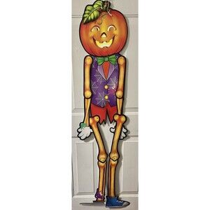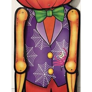 VINTAGE SKELETON JACK O LANTERN SPIDERWEB SUIT HALLOWEEN DECORATION DIE CUT 60 x 13. Rare. See pictures, please. Ships quickly