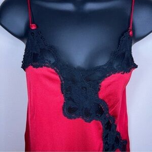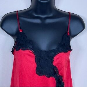 VINTAGE SMALL RED BLACK LACE CHEMISE RETRO GLAM 80s STRETCH NIGHTIE