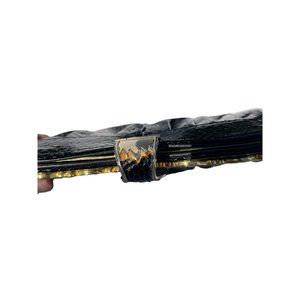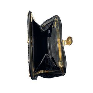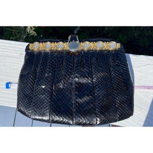 VINTAGE SNAKESKIN PURSE black gold crystals made in Hongkong