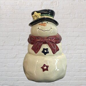 Bring a touch of festive charm to your kitchen this holiday season with this delightful Snowman Cookie Jar, designed to spread joy! Shaped like a cheerful snowman, this whimsical jar features an adorable carrot nose, star-shaped buttons, and a vibrant red bow at the neck, making it the perfect centerpiece for your holiday treats. Topped with a classic black hat adorned with a shimmering gold bow, it’s not just a cookie jar—it’s a statement piece that adds warmth and cheer to your holiday decor!