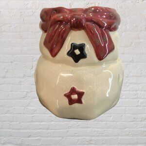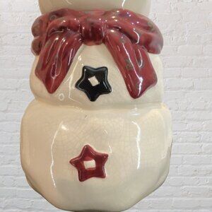 VINTAGE SNOWMAN COOKIE JAR -- White w/Red Bow, Black Top Hat w/Gold Bow, 2 PC