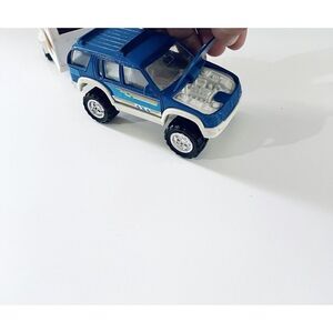 VINTAGE SOMA DIE-CAST METAL AND PLASTIC MIGHTY WHEELS BLUE 4X4 & TRAILER