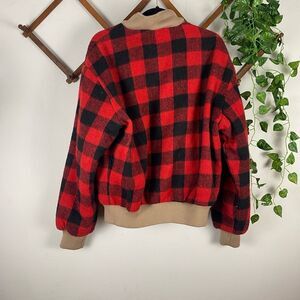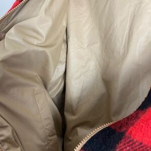 Plaid bomber jacket with tan inside. Could be worn both ways. Two front pockets. Hunting jacket.