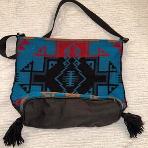 SOUTHWESTERN WOVEN EL PASO SADDLE BAG W/ TASSELS NEVER WORN. NWOT BAG CALLED THE “EL PASO SADDLEBAG” in a SOUTHWESTERN PATTERN. MEASUREMENTS - 14 x 11 x 5.5. Shoulder strap.