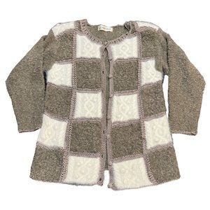 VINTAGE SQUARE PATTERN TAN CARDIGAN SIZE MEDIUM | Y1
