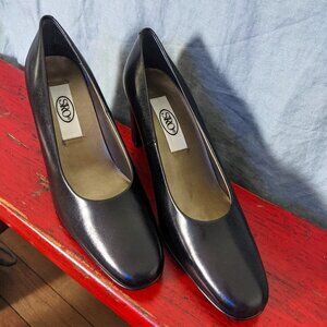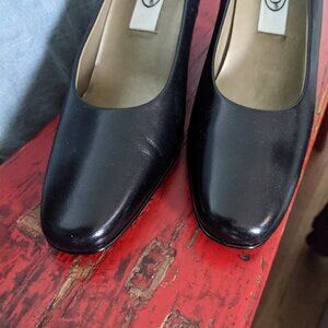 VINTAGE SRO Black Leather Pumps Block Heel 8