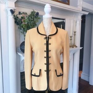 VINTAGE ST. JOHN By Marie Gray Yellow W/ Black Trim Wool Blend Jacket Size 4