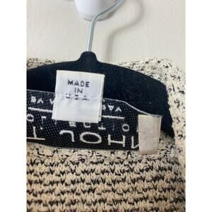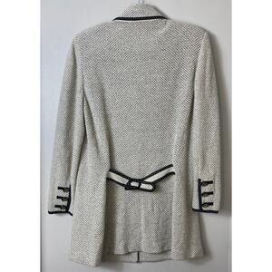 VINTAGE ST JOHN JACKET 12 CREAM BLACK GOLD VICTORIAN KNIT LONGLINE LAGENLOOK