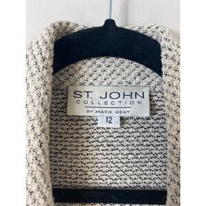 RARE ST JOHN COLLECTION VTG LONG KNIT BLAZER JACKET BUTTON UP GRAY GREY SZ 12