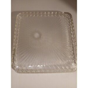G9-The Vintage Starburst Glass 8" Square Dish with Scalloped Edge is a decorative piece that adds a touch of nostalgia to any kitchen or dining area. Made of clear glass with a square shape and scalloped edges, this dish is perfect for serving snacks or desserts. Its vintage design gives it a unique and charming appeal, making it a standout piece for any collector or admirer of retro home decor. See pictures