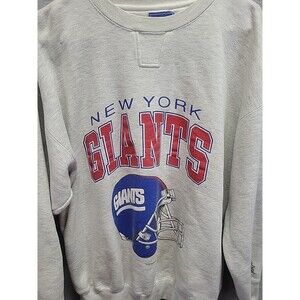 The product is a vintage Starter New York Giants 1993 script crewneck sweater in blue, designed for men in size XL. This officially licensed NFL apparel represents the New York Giants team in the National Football League, making it a perfect addition for fan apparel and souvenirs collection. The sweater features the iconic team logo and colors, making it a stylish and nostalgic piece for any football enthusiast.