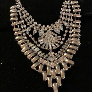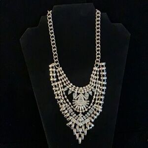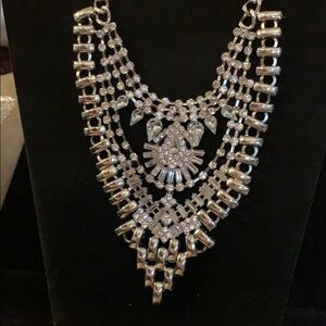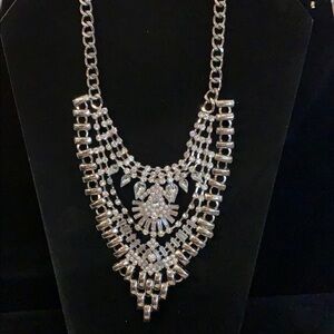 VINTAGE STATEMENT Necklace! WOW!Sparkles SPARKLE! Gorgeous Silver Rhinestone Necklace All Stones Intact. SO Beautiful! Feel love like Royalty wearing this!