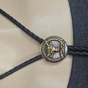 This sophisticated bolo necklace features a Steer with a boxed wire detailing in goldtone.