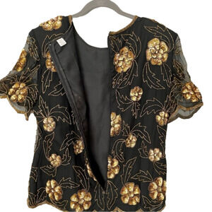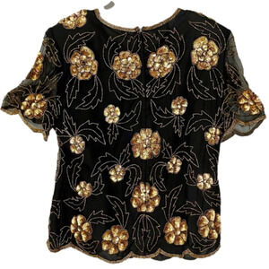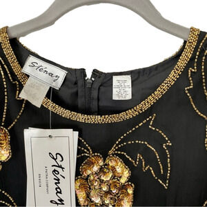 Vintage STENAY 100% Silk Black w/Gold Sequin Blouse Top Size 18