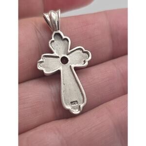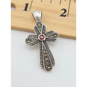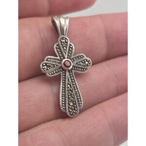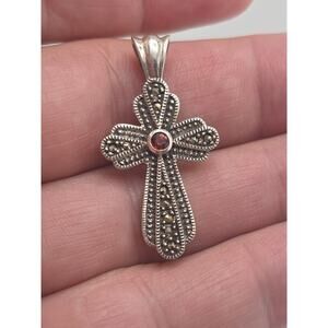 VINTAGE STERLING SILVER 925 MARCASITE STONE GARNET CROSS PENDANT