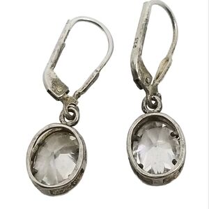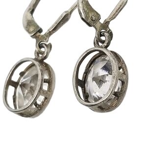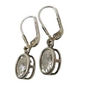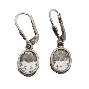 VINTAGE STERLING SILVER & BEZEL SET CZ DROP STYLE EARRINGS