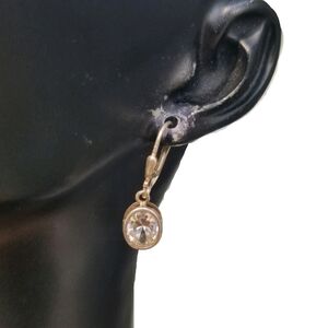 Lovely vintage lightweight drop style earrings made of sterling silver and bezel set cubic zirconia stones. Earrings measure 1-1/8 inches tall and 3/8 inches wide. Earrings have latch back hooks and are stamped 925 on hooks. Great condition.