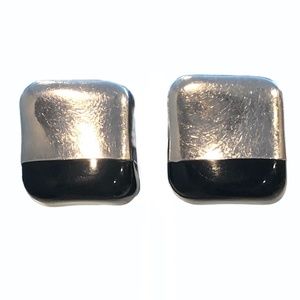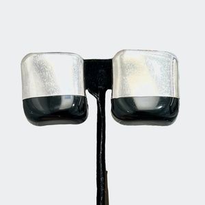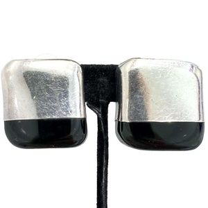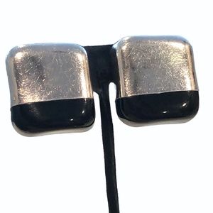 VINTAGE STERLING SILVER & BLACK SQUARE CLIP ON EARRINGS