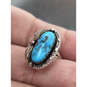 VINTAGE STERLING SILVER NATIVE AMERICAN TURQUOISE RING SIZE 8