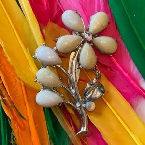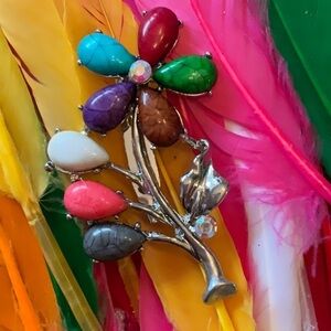 VINTAGE STONE & RHINESTONE FLOWER BROOCHES