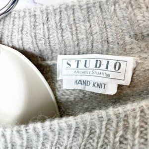 Vintage sweater by Studio Michelle Stuart! Hand knit gray wool sweater with floral wreath and heart design. Shoulder pads attached but can be easily taken out if you prefer. No size tag but fits like a medium. Nice condition. Measurements: 20" pit to pit and 27" long.