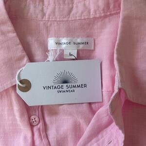VINTAGE SUMMER SWIMWEAR COTTON BUTTON UP COLLARED SHIRT IN PINK NWT SIZE LARGE